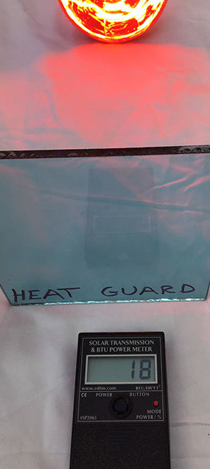 Heat Guard Glazing- temperature dropped from 300 to 19 degrees; stopped 94% of the heat
